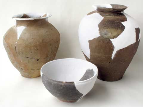 | 遺跡内にある御社2号墳(経塚か)出土の陶器群 | ||