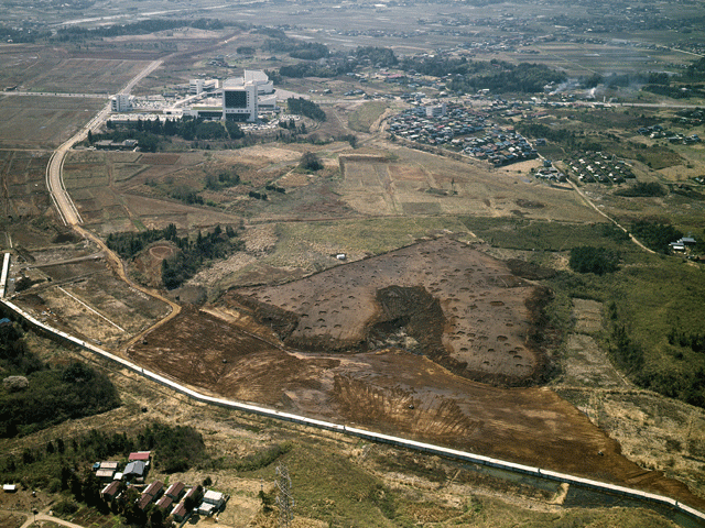 に関係の深い古代の集落として知られていますが、弥生時代後期の竪穴住居跡も42棟検出されており、弥生時代のムラの跡でもあったようです。遺跡は幅のある谷を見おろす台地の上にあり、もしかすると谷底を水田として利用していたのかもしれません。