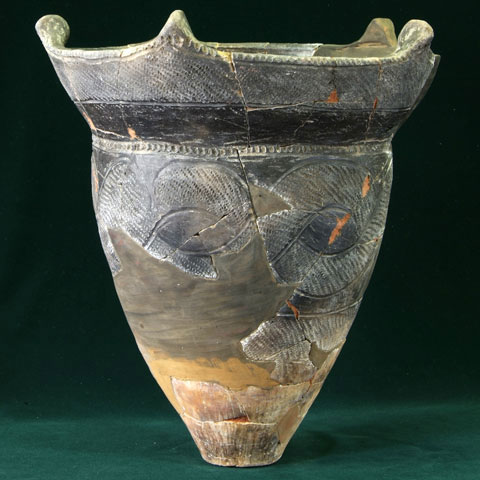 詳細:口径32.9cm、器高36.1cm、底径6.7cm。精製の深鉢。焼成良。