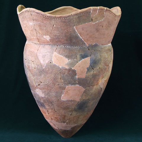 詳細:層位III(貝下)層出土。口径36.0cm、器高51.5cm、底径4.4cm。