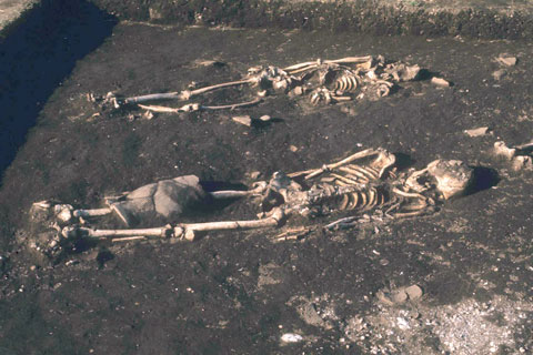 | 1次調査では、表土を掘り始めるとすぐに人骨も出てきた。地表からは30cmほどだ。しかも保存状態が極めて良好だった。 |