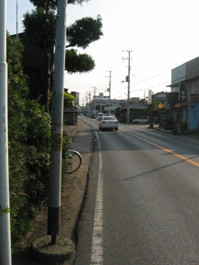 8-2(上) 白塚橋を渡る手前から旧国道との合流点を眺める。房総往還と合流した古代の推定メインルートは、ここから再び旧国道(バス通り)に乗り、姉崎方面に向かいます。