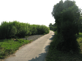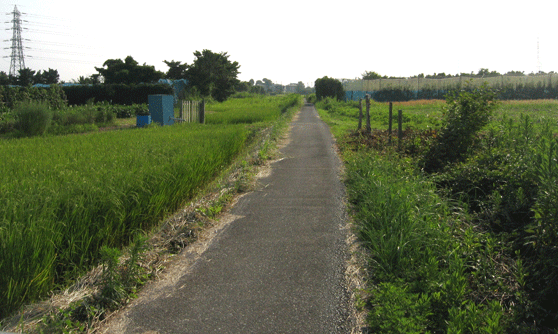 5-1(上) 島穴神社と白塚台遺跡から、再びメインルートに戻りました。古道は微高地と水田の間を抜けていきます。 |