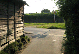 | 6-1(上) しばらくまっすぐな道が続きます。かつて7月21日には、島穴神社と姉崎神社の祭礼で、御輿が行き来したルートです。 |