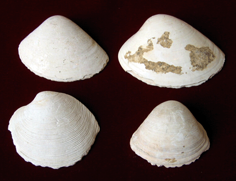 出土地:西広貝塚(さいひろかいづか) 遺跡所在地:国分寺台・西広(こくぶんじだい・さいひろ) 遺構:貝層中など 時代:縄文時代後期 解説:大型のハマグリの腹縁部(貝殻のへりの部分)への刃の付け方には、腹縁部全面におよぶもの・中央部だけのもの・片側だけによるものなど様々ですが、握りやすい比較的大型の貝殻が選ばれていることに共通性が見られます。また、貝殻の外側に刃を付けたものが主流ですが、内側に刃を付けたものもまれに見られます。今から40年ほど前に初めて発見され、それ以降、東北・関東地方など各地で大量にみつかるようになりました。貝塚からは、最も多く見つかる遺物の一つで、大きな貝塚だと数100点、時には1,000点以上見つかることがあります。食べたあとのハマグリの貝殻を主に使っていることから、道具の素材は身近にたくさんあるわけです。「使い捨て」のような感覚で作られ、捨てられたものと思われます。 ところで、この道具の用途については、魚のウロコ落とし・解体のためのものと考えられています。実験的に魚のウロコ落としをしてみたところ、刃を付けないものよりかなり効率的であったという報告があります。 |